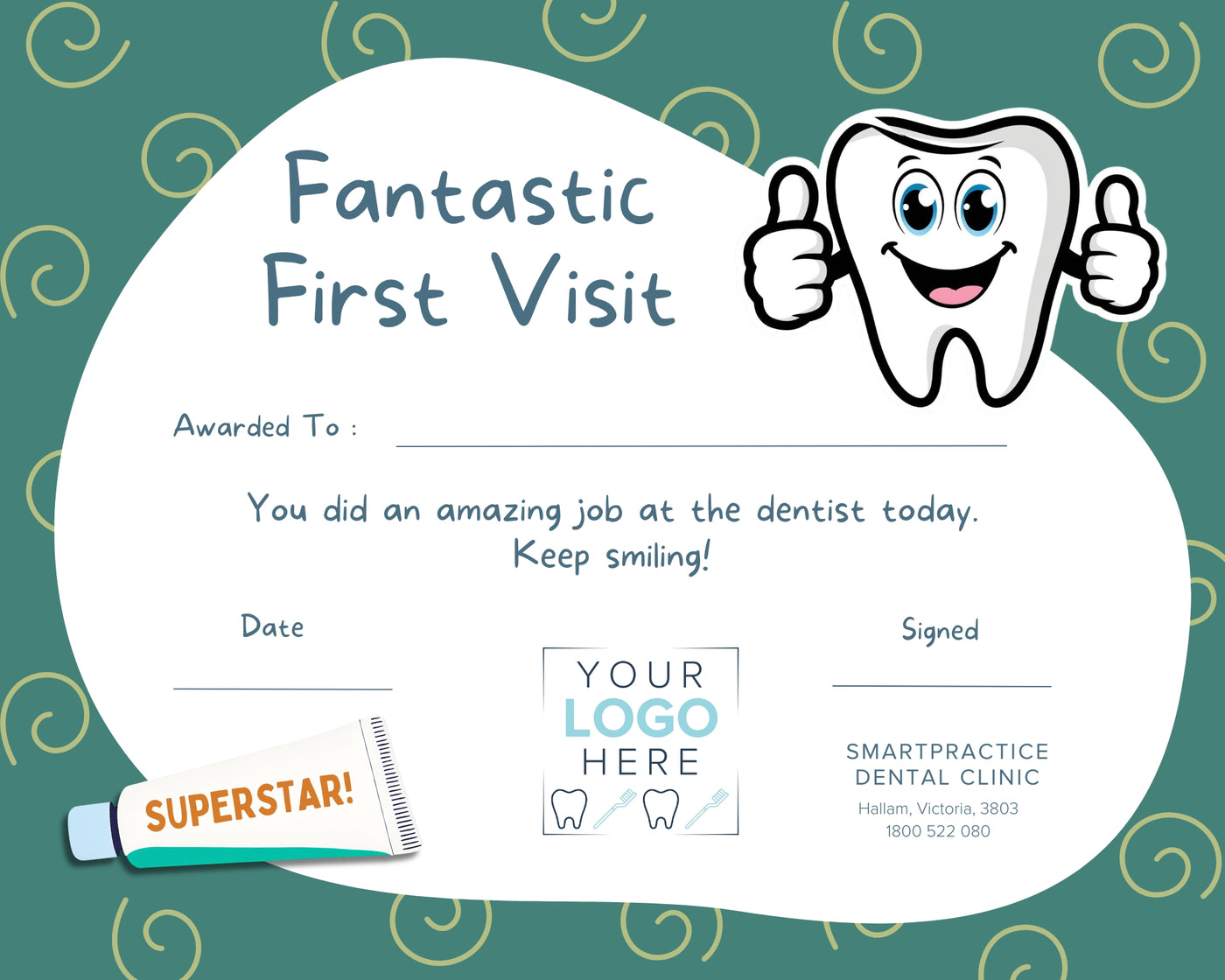{ "id":9726525833502, "title":"Fantastic First Visit Award (100 Pack)","handle":"fantastic-first-visit-award-100-pack", "description":"\u003cp\u003eCelebrate dental health milestones with our recognition awards! Reward youngsters for their bravery and encourage them to maintain excellent oral health.\u003c\/p\u003e\n\u003cul\u003e\n\u003cli\u003eFREE Personalisation\u003c\/li\u003e\n\u003cli\u003eAward Size: 8\" x 10\"\u003c\/li\u003e\n\u003cli\u003e100 Pack\u003c\/li\u003e\n\u003c\/ul\u003e", "published_at":"2025-04-07T09:36:24", "created_at":"2025-03-14T14:24:26", "vendor":"SmartPractice Australia", "type":"Dental", "tags":["Certificates \u0026 Awards","Dental Kid's Giveaways","Dental Promotional Products \u0026 Giveaways","Personalised","Promotional Products \u0026 Giveaways","Toys \u0026 Games"], "price":8000, "price_min":8000, "price_max":8000, "price_varies":false, "compare_at_price":0, "compare_at_price_min":0, "compare_at_price_max":0, "compare_at_price_varies":false, "all_variant_ids":[49661023781150], "variants":[{"id":49661023781150,"title":"Default Title","option1":"Default Title","option2":null,"option3":null,"sku":"SPA003","requires_shipping":true,"taxable":true,"featured_image":null,"available":true,"name":"Fantastic First Visit Award (100 Pack)","public_title":null,"options":["Default Title"],"price":8000,"weight":100,"compare_at_price":0,"inventory_management":"shopify","barcode":null,"requires_selling_plan":false,"selling_plan_allocations":[]}], "available":null,"images":["\/\/smartpractice.com.au\/cdn\/shop\/files\/FantasticFirstVisit.jpg?v=1741922678"],"featured_image":"\/\/smartpractice.com.au\/cdn\/shop\/files\/FantasticFirstVisit.jpg?v=1741922678", "options":["Title"], "url":"\/products\/fantastic-first-visit-award-100-pack"}